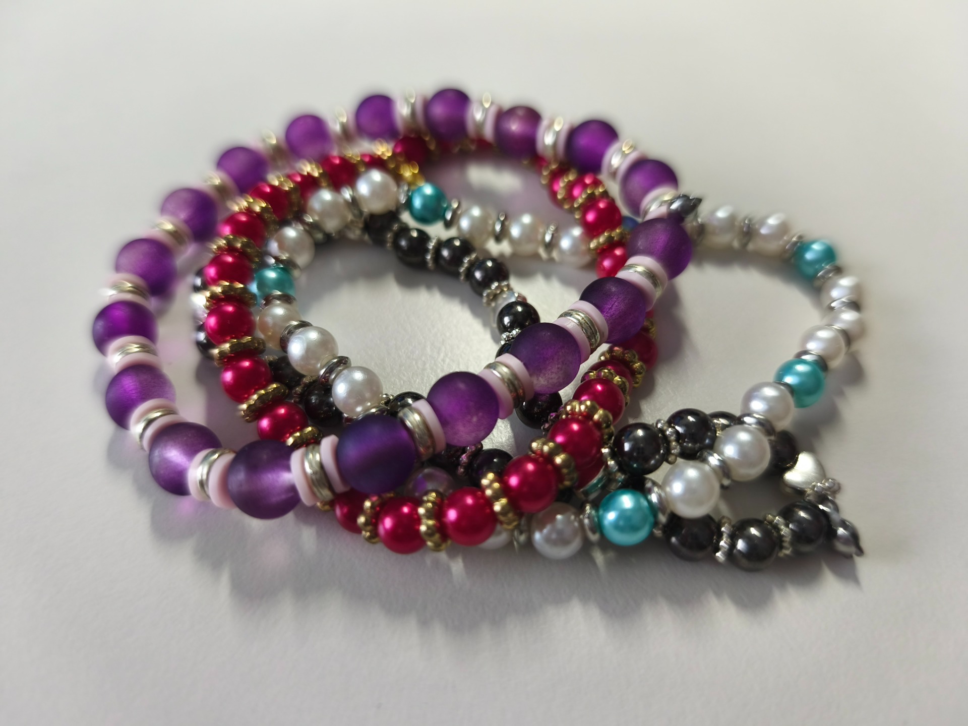Korálkový náramek na gumičce. K dispozici v různých barvách a vzorech.